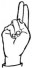 На ћирилици написано АНДЈЕЛИНА КРСМАНИЋ састоји се из 17 слова [?]. Исписано ћириличном једноручном азбуком за глувонеме: